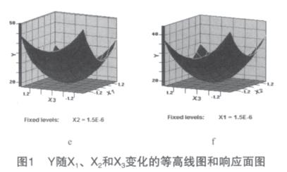 利用響應面分析法[1]化枸杞子渣超微粉碎工藝參數(shù)。在單因素預試驗基礎上,用SAS軟件系統(tǒng)進行響應面分析,設計一個三因素五水平的回歸方程來擬合因素和指標(響應值)之間的函數(shù)關系。選擇球料比(X1)、枸杞子渣漿液濃度(X2)和攪拌器轉速(X3)作為因素,以粉碎后的顆粒粒度d50作為響應值對球磨機濕法超微粉碎工藝進行化。
